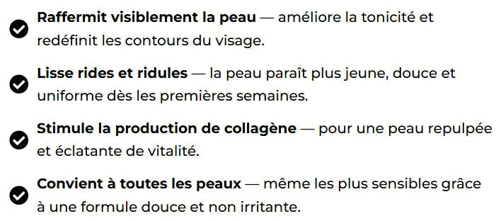 J’ai été bluffée par les résultats ! Dès la deuxième semaine, ma peau est visiblement plus ferme et tonique. Les contours du visage sont mieux dessinés et la texture de la peau beaucoup plus lisse. Je ne pensais pas retrouver une telle élasticité aussi rapidement. ⭐⭐⭐⭐⭐